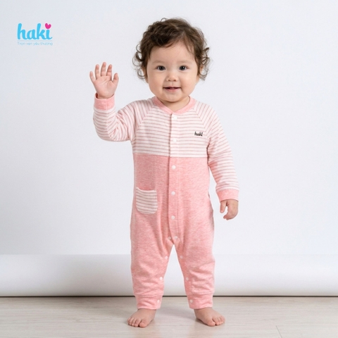 Mẫu body cài giữa phối nửa thân của Haki là sự kết hợp hoàn hảo giữa tính tiện dụng và thời trang. Với thiết kế này, mẹ không cần quá lo lắng khi thay đồ cho bé sơ sinh vốn còn rất non nớt.