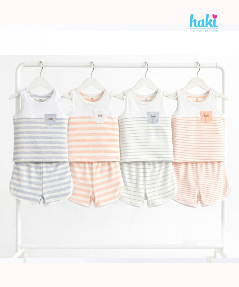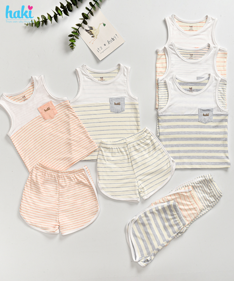 Bộ sát nách kẻ phối màu của HAKI được may từ vải sợi tre nên có đặc tính mềm mại, kháng khuẩn. Công nghệ dệt hiện đại giúp bề mặt vải se, nhiều lỗ thoáng khí, thấm hút mồ hôi tốt và khô nhanh. Kiểu quần áo ba lỗ với họa tiết kẻ mang đến sự năng động, khỏe khoắn cho bé con.