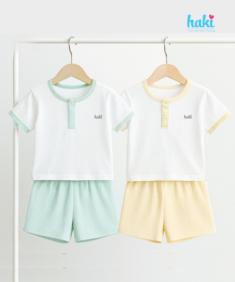 Bộ cộc tay cổ trụ phối màu của Haki chất liệu Bamboo cao cấp bề mặt vải mềm, mướt, thấm hút vượt trội. Đặc biệt, vải sợi tre cao cấp của Haki có khả năng kháng khuẩn tự nhiên, điều hoà thân nhiệt, chống tia UV... đem lại trải nghiệm hoàn toàn khác biệt so với các sản phẩm sợi tre thông thường.