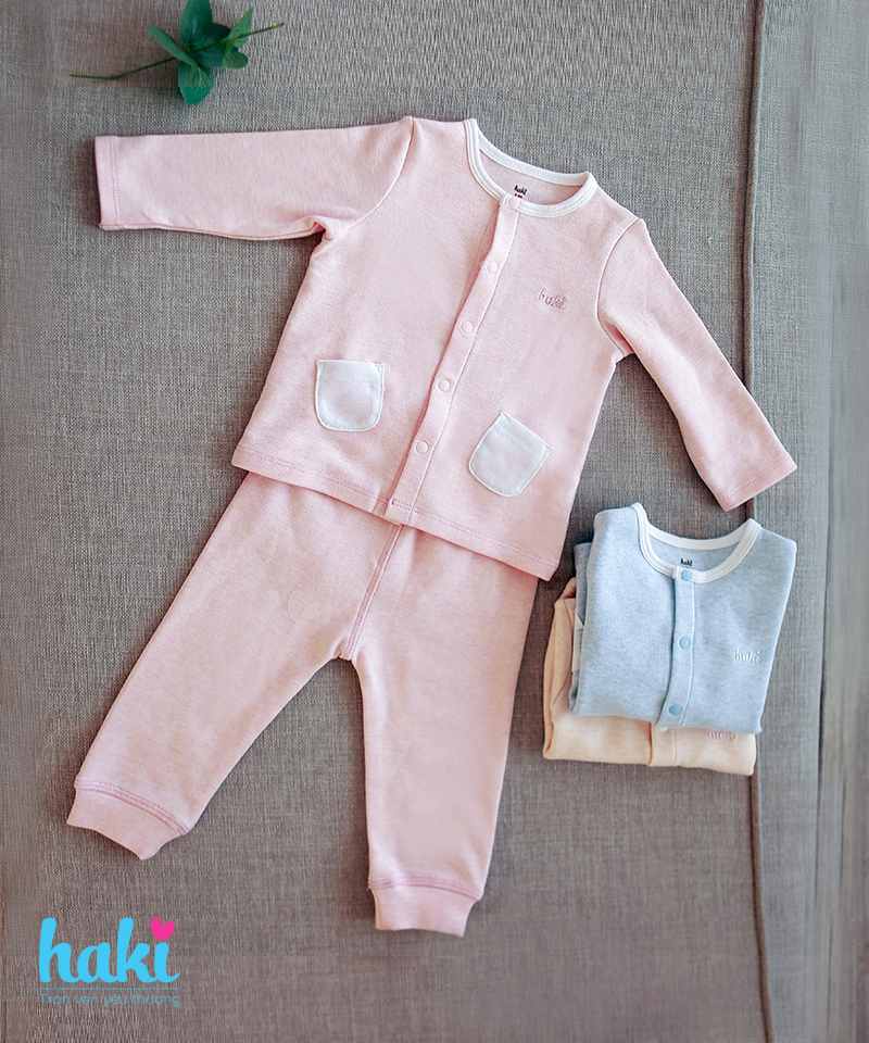 - Áo được thiết kế với kiểu dáng dài tay, cổ bo tròn với dải khuy bấm tiện dụng được nhập khẩu từ Nhật Bản, giúp các mẹ thay đổi trang phục cho bé một cách dễ dàng cũng như tạo cảm giác thoải mái cho bé khi thay đồ. Ngoài ra, điểm nhẩn trên áo chính là hình 2 chiếc túi nhỏ, tạo cho bé phong cách tươi tắn và hồn nhiên.