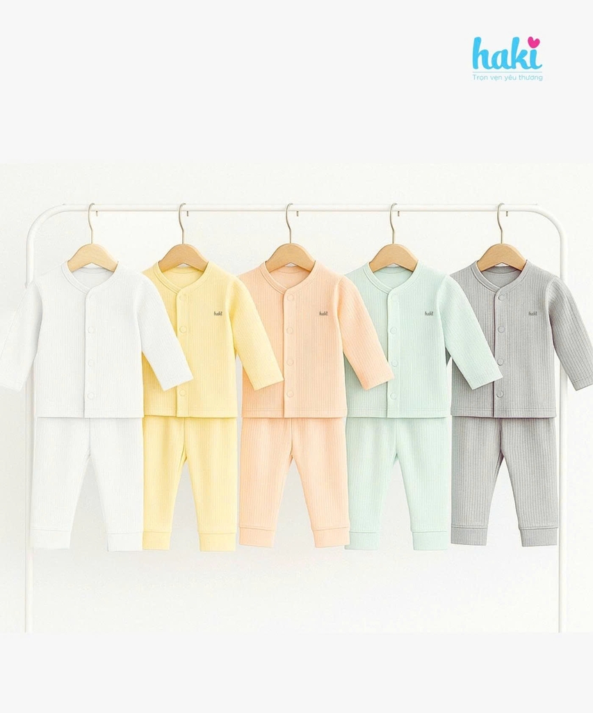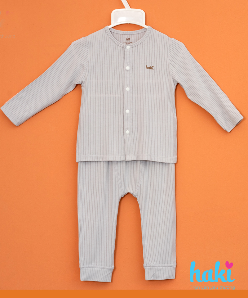 Bộ dài tay cài giữa vải gỗ sồi của Haki với chất liệu tự nhiên giúp thấm hút mồ hôi, an toàn cho làn da nhạy cảm. Họa tiết trơn với màu sắc tươi sáng, tôn da cho trẻ.