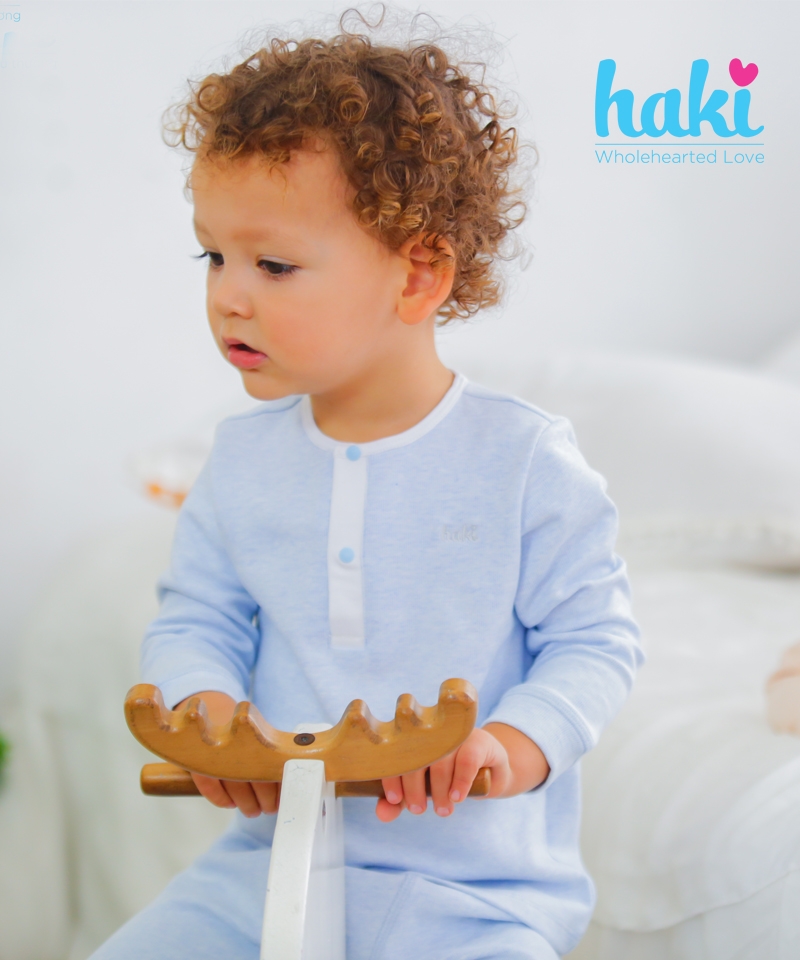 Bộ dài tay cổ trụ Melange Cotton cao cấp của Haki của Haki sử dụng chất vải Melange cotton cao cấp, đạt tiêu chuẩn an toàn Châu Âu.