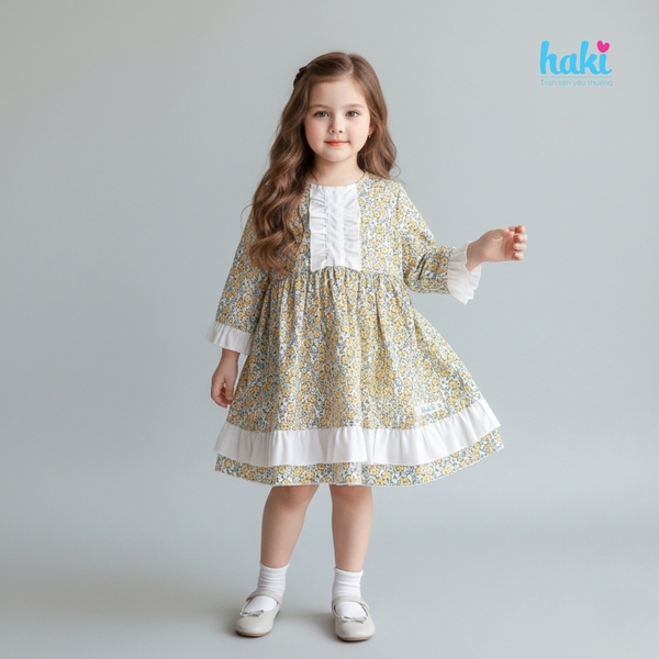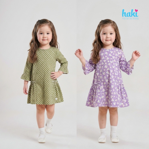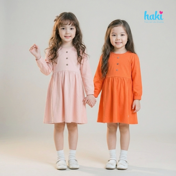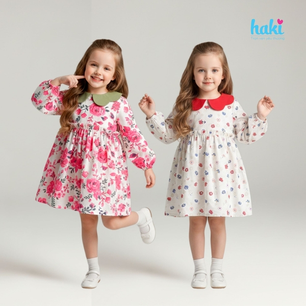 Đa dạng phong cách: Từ váy xòe công chúa đến váy suông năng động, các mẫu váy thu đông tại Haki đáp ứng mọi cá tính của bé.