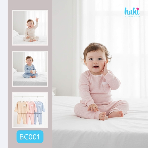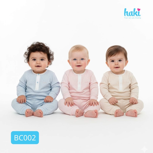 Đồ sơ sinh haki thu đông luôn chiếm trọn tình yêu của mẹ nhờ thiết kế mang tính ứng dụng cao, bảo vệ bé toàn diện. Mỗi khi tiết trời chuyển lạnh, việc lựa chọn trang phục cho bé yêu trở thành ưu tiên hàng đầu, đòi hỏi sự cân nhắc kỹ lưỡng giữa yếu tố giữ ấm, thoáng khí và an toàn cho làn da nhạy cảm của bé. Đồ sơ sinh thu đồng Haki với 3 chất liệu vải cao cấp: vải sợi tre cotton (bamboo cotton), sợi tre chần bông và melange cotton. Đây chính là bí quyết giúp bé vượt qua mùa lạnh nhẹ nhàng, êm ái nhất. Haki cam kết mang đến những sản phẩm đồ sơ sinh haki chất lượng nhất, là lựa chọn thông minh và an toàn cho sức khỏe của bé.