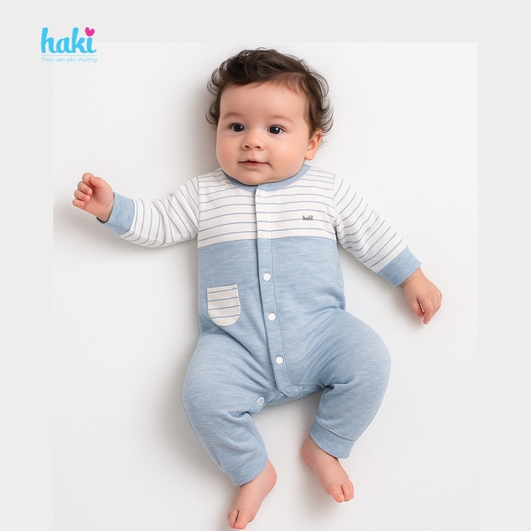Tác dụng: đảm bảo giữ ấm tuyệt đối vùng bụng và lưng – nơi dễ bị lạnh nhất của trẻ sơ sinh. Body dài tay haki là lựa chọn hoàn hảo cho bé dưới 12 tháng tuổi.