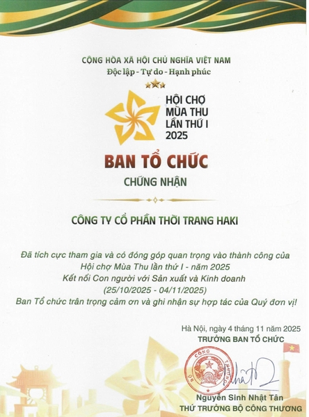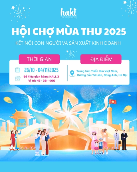 Hành trình 11 ngày (từ 25/10/2025 đến 04/11/2025) đầy ắp năng lượng và yêu thương của Công ty Cổ phần Thời trang Haki tại Hội chợ Mùa Thu Lần Thứ I...