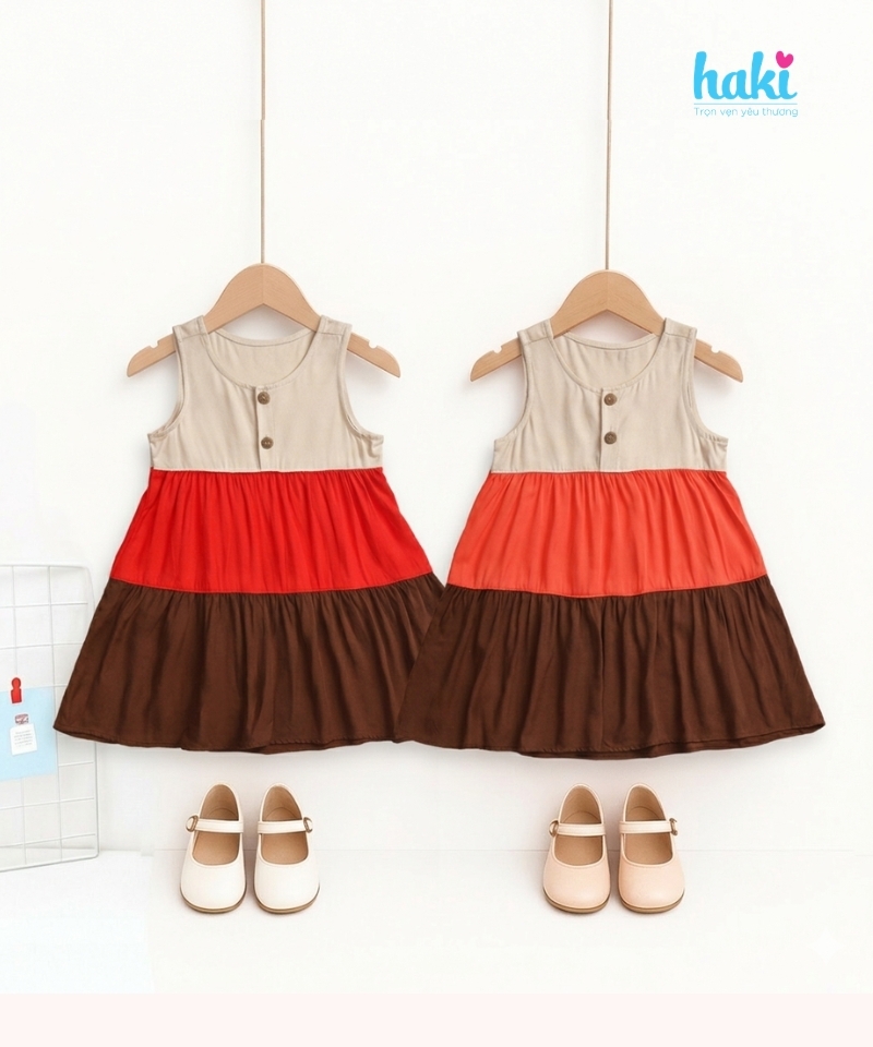 Váy bé gái 3 tầng color block của Haki vô cùng bắt mắt và xinh xắn, phối 3 màu kiểu color block rất "Tây", chất vải thô lanh thái mềm mại thấm hút mồ hôi cực tốt. Váy rất phù hợp cho các bé đi biển, đi chơi, đi chụp ảnh những ngày hè rực rỡ.