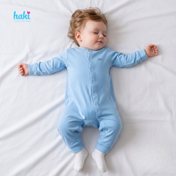 Đối với các bé trai còn nhỏ, đặc biệt là giai đoạn sơ sinh, việc giữ ấm bụng là điều tiên quyết. Chiếc body sợi tre cotton của Haki thiết kế liền thân giúp: